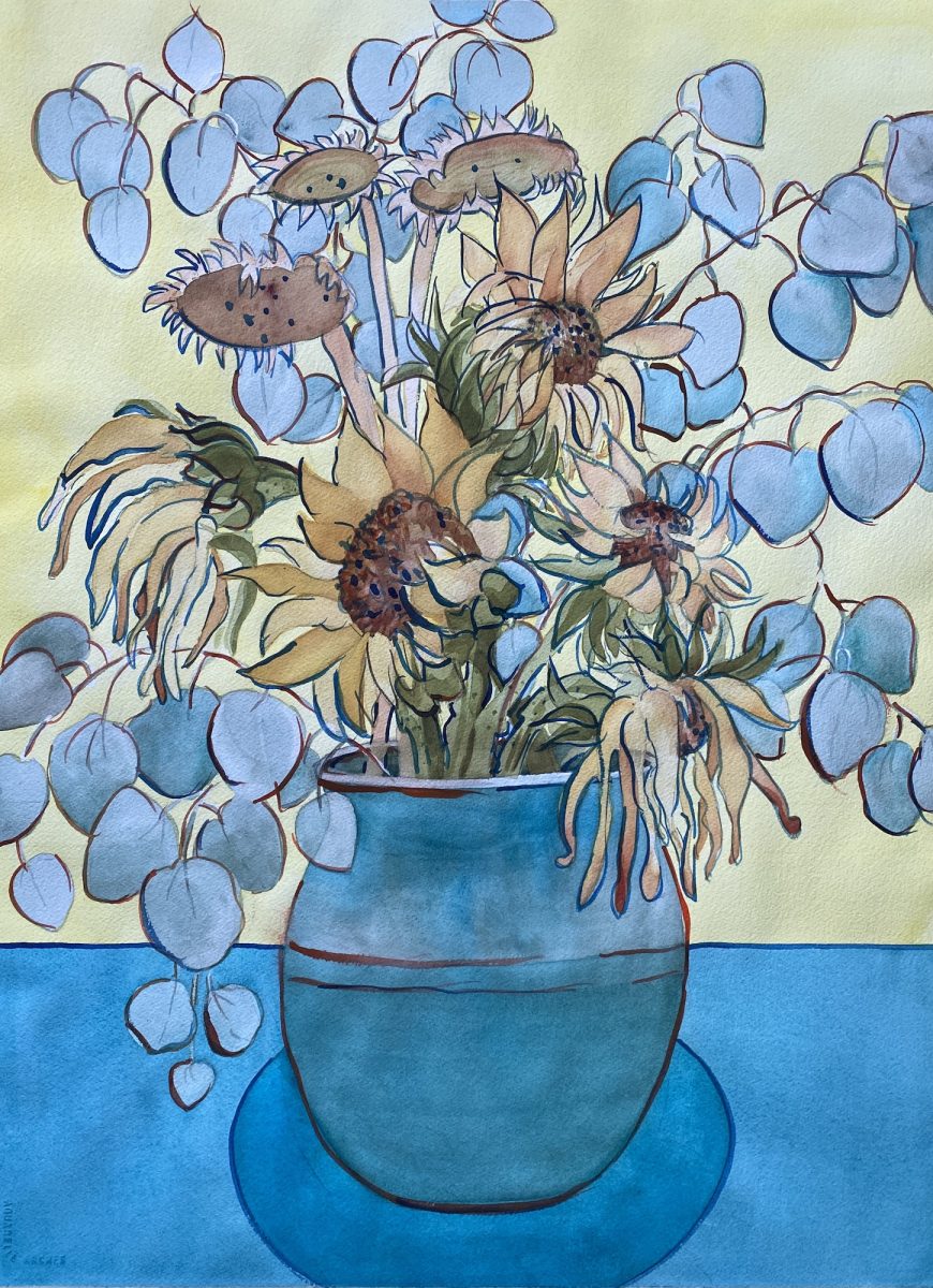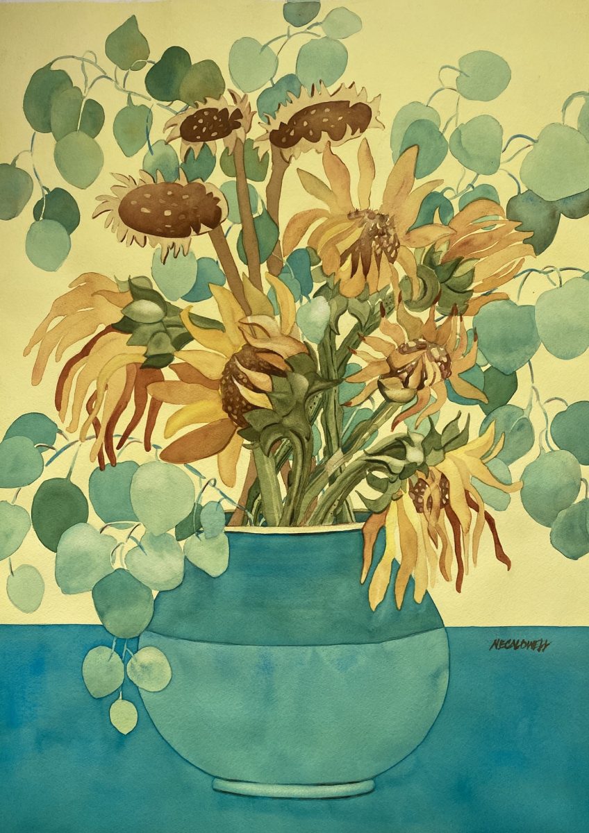 250202-002-FUL, Sunflowers and Silver Dollars (1), watercolor