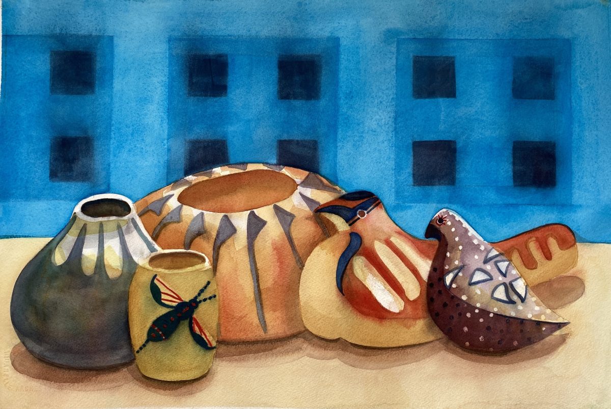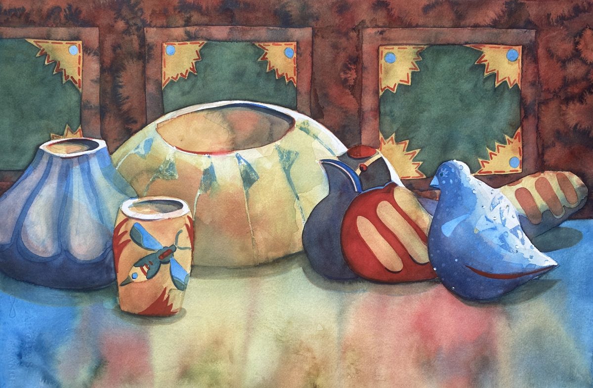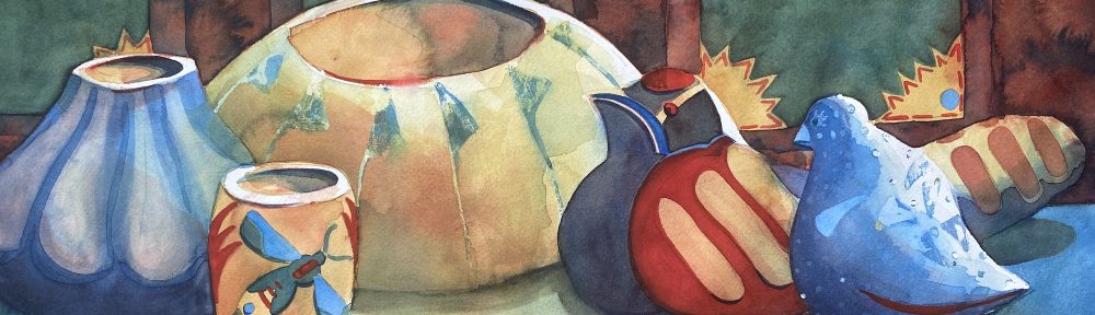 250301(1)-005-HLF, Southwest Pottery, 15×22, watercolor