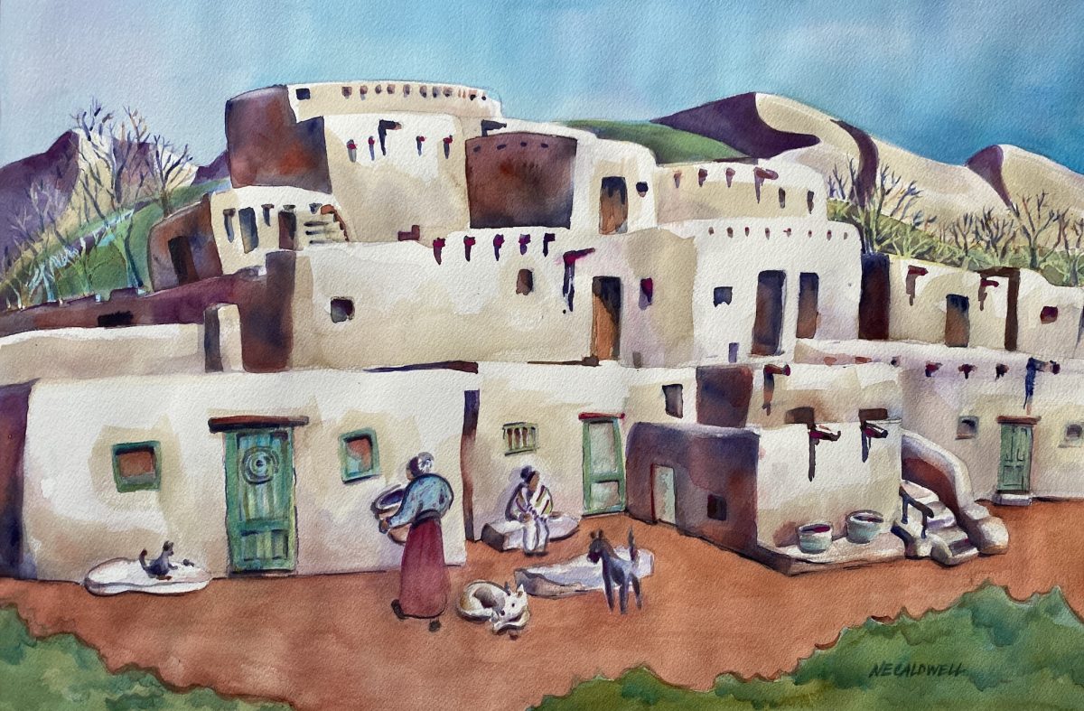 251110-024-HLF, Pueblo Life, watercolor